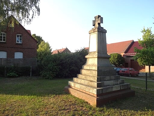 Stele vor der Kirche für die Gefallenen des Ersten Weltkriegs.