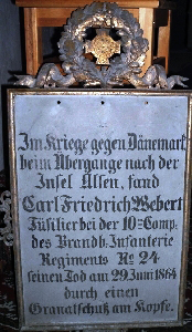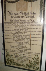 Gedenktafeln in der Kirche für die Feldzüge von 1813-15 bis 1870/71 sowie vom 1. Weltkrieg.