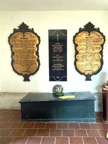 Drei Wandtafeln im Vorraum der Kirche.