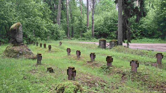 Kriegsgräberstätte für Gefallene des 1. Weltkriegs in den Wäldern zwischen Daugmale und Baldone.