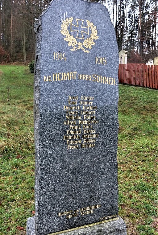 Stele mit Namen der Gefallenen des Ersten Weltkriegs.