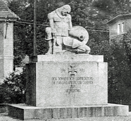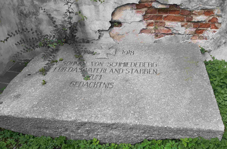 Ehemaliges Denkmal für die Gefallenen des 1. Weltkrieges aus Schmiedeberg neben der Kirche.