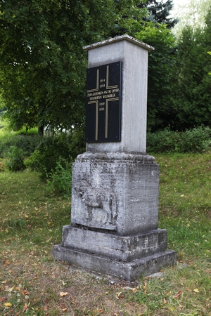 Einfacher Obelisk auf drei Stufen. Unterteil enthält Halbrelief eine Pferdes, oberer Teil auf einer schwarzen Platte eine Inschrift in einem lateinischen Kreuz als Widmung. Darunter waren wahrscheinlich Opfernamen aus dem Ersten Weltkrieg verzeichnet.