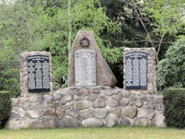 Das Ehrenmal aus Feldsteinen und einem Findling, auf dem oberhalb des Steines ein Eichenlaubkranz angebracht ist, befindet sich direkt