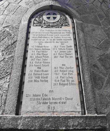 ist eine Tafel für die Gefallenen des 1. Weltkriegs eingelassen.
