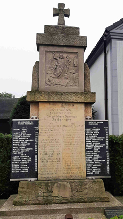 Für die Gefallenen des 2. Weltkriegs wurden nach 1990 seitlich zwei schwarze Steintafeln mit den Namen angebracht.