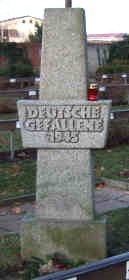Ebenfalls auf dem Friedhof ein Findling auf gemauertem Sockel zur Erinnerung an den Ersten Weltkriegs und daneben Soldatengräber und eine Vertriebenenstele.