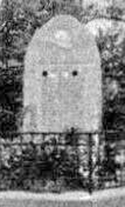 Die früher im Ort aufgestellte Platte liegt heute flach an der Kirchhofmauer.