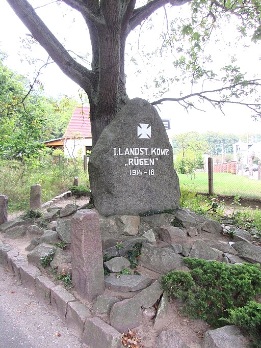 Kriegerdenkmal (Findling mit Inschrift) im Ort.