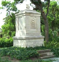 Auf dem Gelände der Kirche ein weiß verputzter Quader, welcher von einem Eisernen Kreuz gekrönt wird.