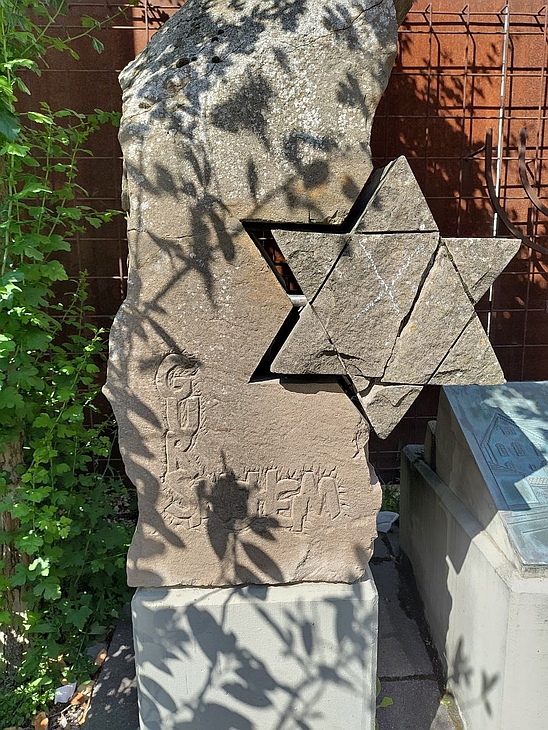 Der Gedenkstein für die am 22. Oktober 1940 deportierten jüdischen Bürgerinnen und Bürger von Sinsheim steht direkt neben dem Pult und wirkt als Teil dieser Erinnerungsstätte. Der Memorialstein für die Deportierten wurde von einer Jugendgruppe der evangelischen Kirche errichtet. Der Gedenkstein enthält einen Davidstern als integriertes doch klar erkennbares Teilstück. Die Inschrift besteht aus den Ortsnamen Gurs und Sinsheim, die durch den End- bzw. den Anfangsbuchstaben miteinander verknüpft sind.