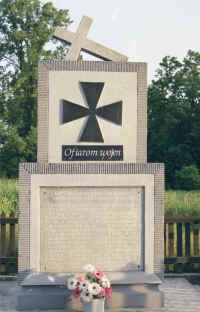 Denkmal für die Gefallenen des Ersten Weltkrieges: Umzäunte Stele inmitten des Dorfes.