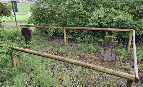 500 Meter entfernt auf dem alten verwilderten evangelischen Friedhof zwei einzelne Grabsteine