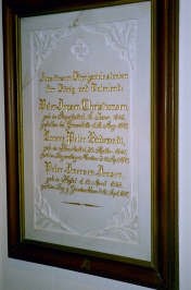 Marmortafel in einem Holzrahmen mit goldenen Inschrift aus der Kirche in Rapstedt.