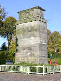 Vor der Sonderburger Marienkirche Ehrenmal für die Kriegstoten des Ersten Weltkrieges. An den vier Seiten des Blocks 199 Namen,