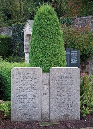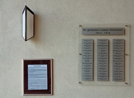 Für die Gefallenen des 1. Weltkrieges wurden in der offenen Aussegnungshalle an einer Wand nach 2011