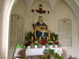 In der Kapelle neben der Pfarrkirche befinden sich zwei oben bogenförmige Marmortafeln mit den Namen in goldener Schrift. Neben den Namen ist jeweils ein Bild des Toten angebracht.