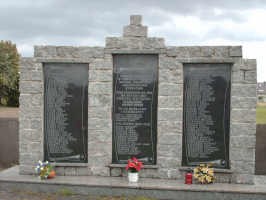 Gedenkwand auf dem ehemaligen alten Friedhof zur Kirche.