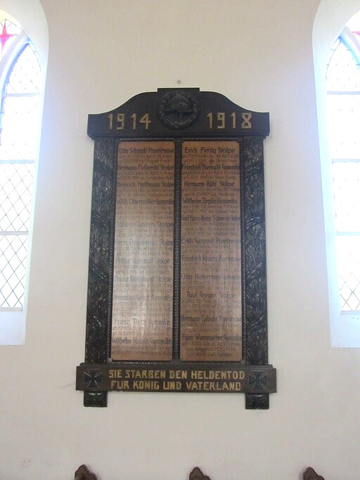 Gedenktafel Erster Weltkrieg in der Kirche.