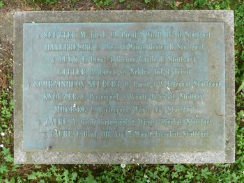 Die auf den Tafeln Genannten waren teils in Frankreich gefallen, teils in Stuttgart wahrscheinlich zumeist in Lazaretten verstorben.