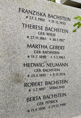 vermisst; für tot erklärt durch Amtsgericht Berlin-Pankow; Ehemann von Berta Bachstein, geb. Petrick (1896-1988) |