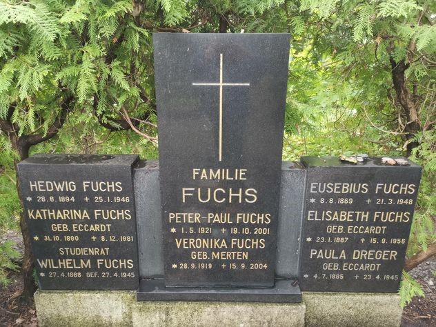 Studienrat; Ehemann von Katharina Fuchs, geb. Eccardt (1890-1981); Kriegsgräberstätte Berlin-Temp., Kath.St.-Matthias-Fdh., Block 5 Grab 75 |