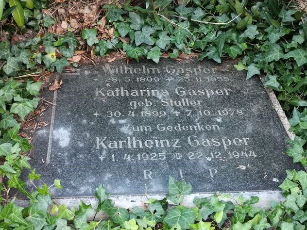 Abiturient; Zum Gedenken…; Sohn von Wilhelm Gasper (1899-1955) und Katharina Gasper, geb. Stuller (1899-1978); Vorname: Heinz |