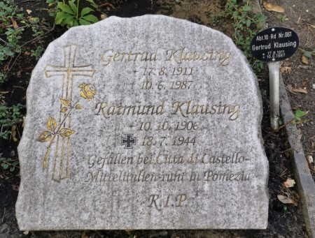 Bauingenieur; Zum Gedenken; Ehemann von Irmgardis Wies, geb. Hüstoles (1918-1978); Kriegsgräberstätte Saldus: Block Y1 Reihe 15 Grab 431 |