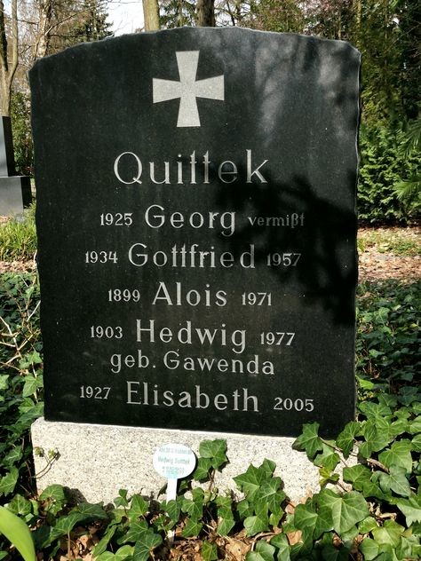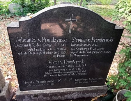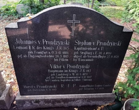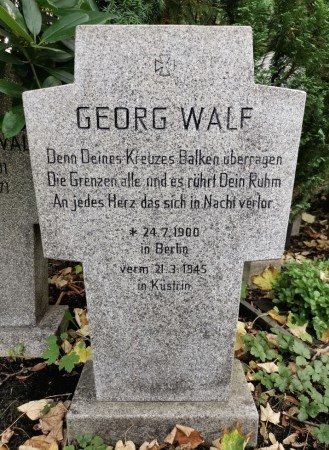 separates Steinkreuz an Familiengrabstelle: Denn deines Kreuzes Balken überragen die Grenzen alle und es rührt dein Ruhm an jedes Herz, das sich in der Nacht verlor…(Angaben)…vermisst in Küstrin |