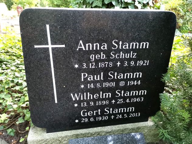 tot erklärt durch Amtsbericht Schöneberg am 19.04.1960, beurkundet beim Standesamt Tempelhof-Schöneberg von Berlin, Nr. 2547/2002; Sohn von Karl Stamm und Anna Stamm, geb. Schulz (1878-1921) |