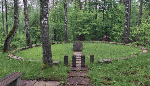 Kriegsgräberstätte für Gefallene des 1. Weltkriegs etwas nördlich des Ortes an der Fernstraße P5 im Wald.
