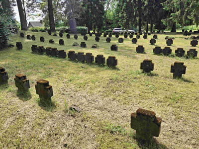 Teile dieser Kriegsgräberstätte wurden zu sowjetischen Zeiten mit Zivilgräbern überbettet, der Rest wurde sich selbst überlassen.