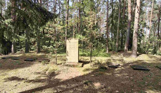 Kriegsgräberstätte für Gefallene des 1. Weltkriegs in den Wäldern weiter nordöstlich von Tīreļi (und südwestlich von Remesi).