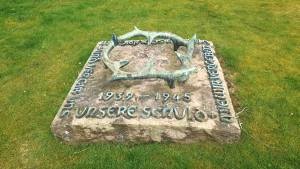 Auf dem Granitquader ist eine große Dornenkrone aus Kupfer angebracht, dazu die Zahlen 1939-1945.