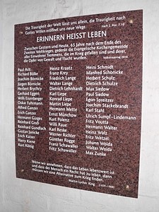 In der Kirche: Gedenktafel mit den Namen der Gefallenen des 2. Weltkriegs.
