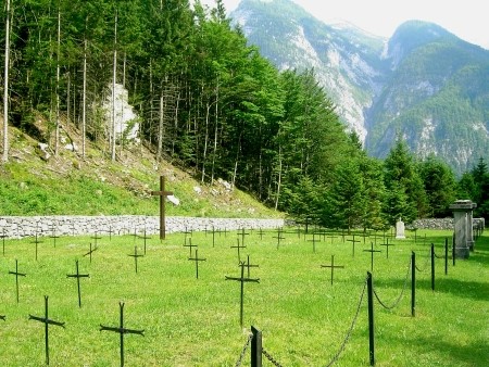Österreichisch-Ungarischer Heldenfriedhof von rund 200 Soldaten, die im Soldaten-Krankenhaus von Trenta verstorben sind.