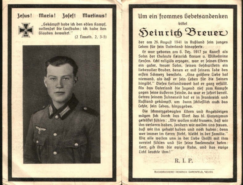 Totenzettel: Angehöriger der Familie Cremerius aus Neuß.