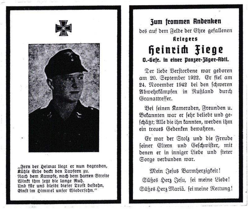 | Obgefr | FIEGE | Heinrich | 20.09.1922 | 24.11.1942 Rußland |
