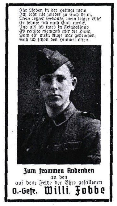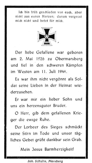 | Obgefr | FOBBE | Willi | 02.05.1926 Obermarsberg | 11.07.1944 im Westen |