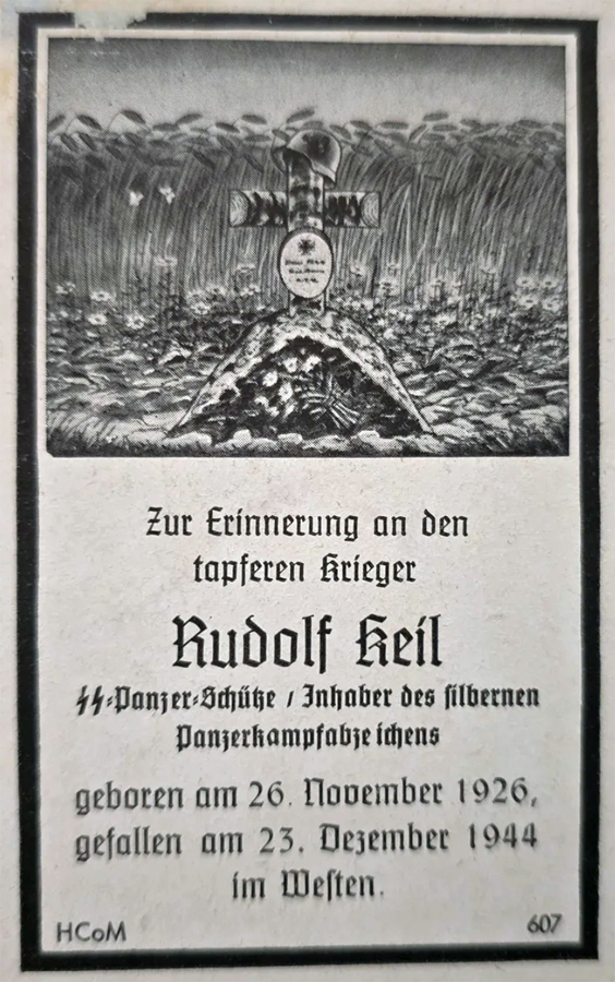 SS‑Panzer‑Schütze | KEIL | Rudolf | 26.11.1926 Dachau | 23.12.1944 im Westen, La Gleize | Kriegsgräberstätte in Lommel: Block 9 Grab 208 |