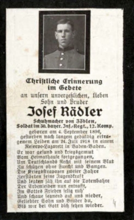 Infanterist | RÄDLER | Josef | 04.09.1896 Zöblen |