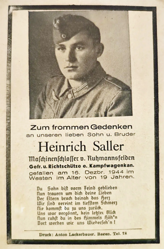 Gefreiter | SALLER | Heinrich | 12.12.1925 Ruhmannsfelden | 16.12.1944 | Richtschütze, Kriegsgräberstätte in Dahn: Block 2 Reihe 4 Grab 1171 |