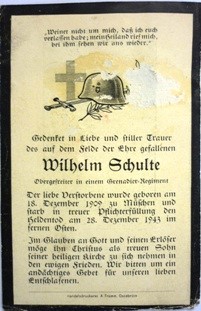 | Obergefreiter | SCHULTE | Wilhelm | 18.12.1909 12.12.1909 Müschen b. Laer |