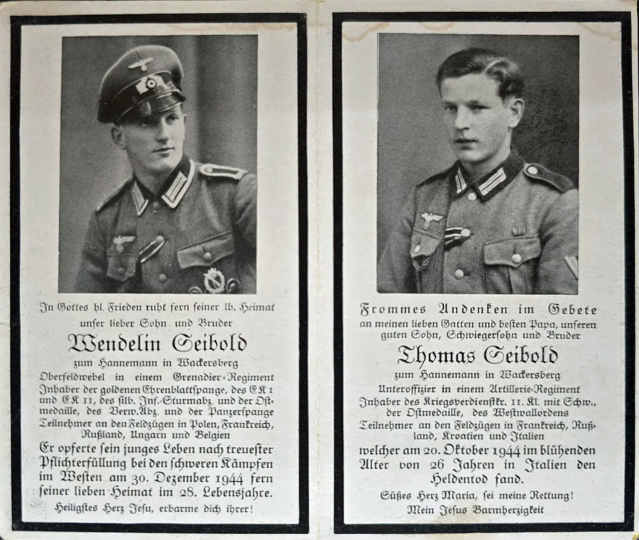 Obergfeldwebel | SEIBOLD | Wendelin | 08.09.1916 Wackersberg | 30.12.1944 im Westen, nordostw. Lutremange Tillet | Grenadier‑Regiment | Kriegsgräberstätte in Recogne-Bastogne: Block 10 Grab 352 |