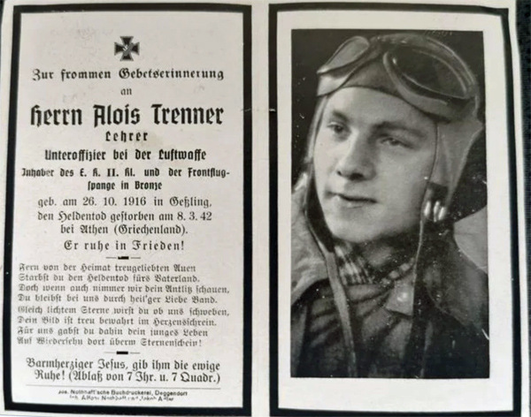 Unteroffizier | TRENNER | Alois | 26.10.1916 Geßling | 08.03.1842 bei Athen (Griechenland), 5 km östlich Flugplatz Kalamaki | Luftwaffe Korpsführungskette, X.FL.Korps | Kriegsgräberstätte in Dionyssos-Rapendoza: Gruft 3 Reihe 7 Platte 13 |