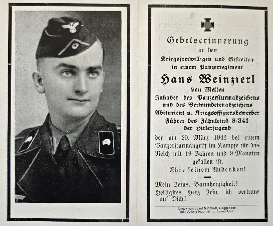 Fähnleinführer, Gefreiter | WEINZIERL | Hans | 04.05.1922 Osterhofen | 20.03.1942 Pogorelki, Raum Rshew | Panzerregiment, HJ‑Fähnlein 8/341 |