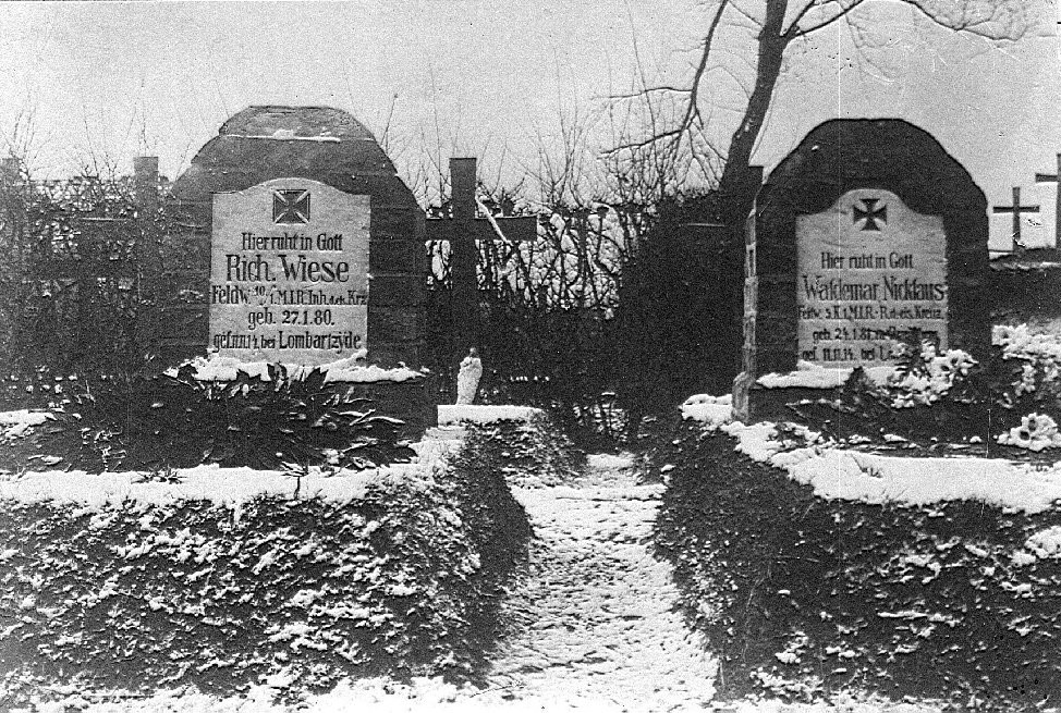 | Feldw.d.S.II | WIESE | Richard Johannes Wilhelm | 27.01.1880 Oppendorf | 11.11.1914 Lombartzyde | Soldatenfriedhof Vladsloo‑Praetbosch, Grab Nr. 8-446 (B) |