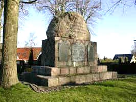 Großer Granitblock (1848/51) mit eingelegter Marmortafel. Außerdem ein Gedenkstein für zwei gefallene Dänen.