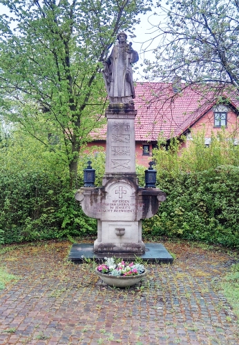 Das Kriegerdenkmal steht hinter der katholischen Pfarrkirche St. Laurentius.