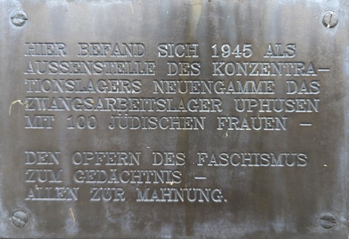 Hier befand sich 1945 als Außenstelle des Konzentrationslagers Neuengamme das Zwangsarbeitslager Uphusen mit 100 jüdischen Frauen